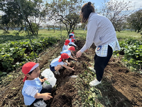 みんなが楽しみにしていたお芋ほりにバスに乗って行ってきました。大きなお芋がたくさんとれて大喜びのこども達♪一生懸命自分の手で掘ったお芋はきっと特別な味がするね☆