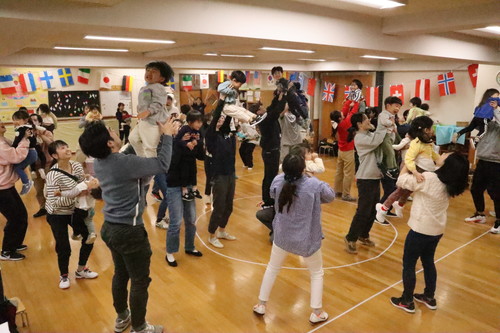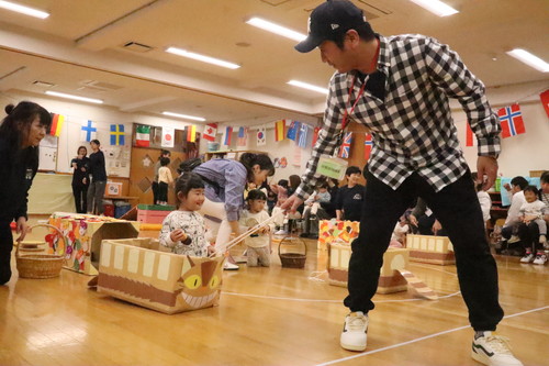 乳児 親子であそぼう 2025年11月14日(金) 11月14日に乳児クラスでは親子であそぼうを開催しました。歩くことが上手になった「りす組さん」と色々な事に挑戦することを楽しめるようになった「うさぎ組さん」は 親子であそぼうでお家の方と一緒に全身を使って巧技台やマットのお山を乗り越えたり、玉入れにも参加しました。体操の先生と親子体操にも挑戦、大人は「わぁー」「きゃー」と言いながら全身を動かし楽しい時間を過ごしました。