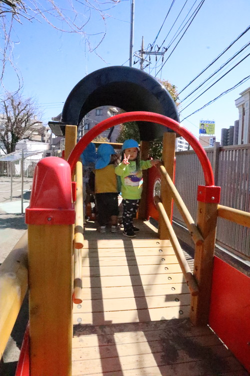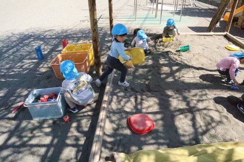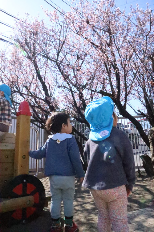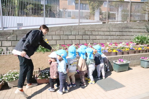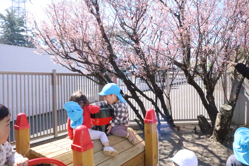 りす組 園庭遊び 2026年3月24日(火) いいお天気だったので、皆で園庭に行って遊びました。沢山のお花を見て「きれいね」と眺めたり「ぴんく」「きいろ」と色を見つけたりと春を楽しんでいました♪大好きな汽車や砂場でも夢中で遊んでいましたよ☆